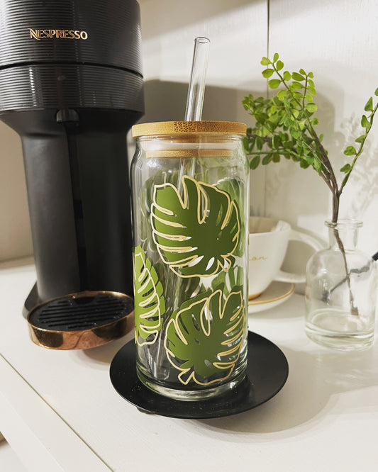 Monstera Leaf Coffee Glass Can